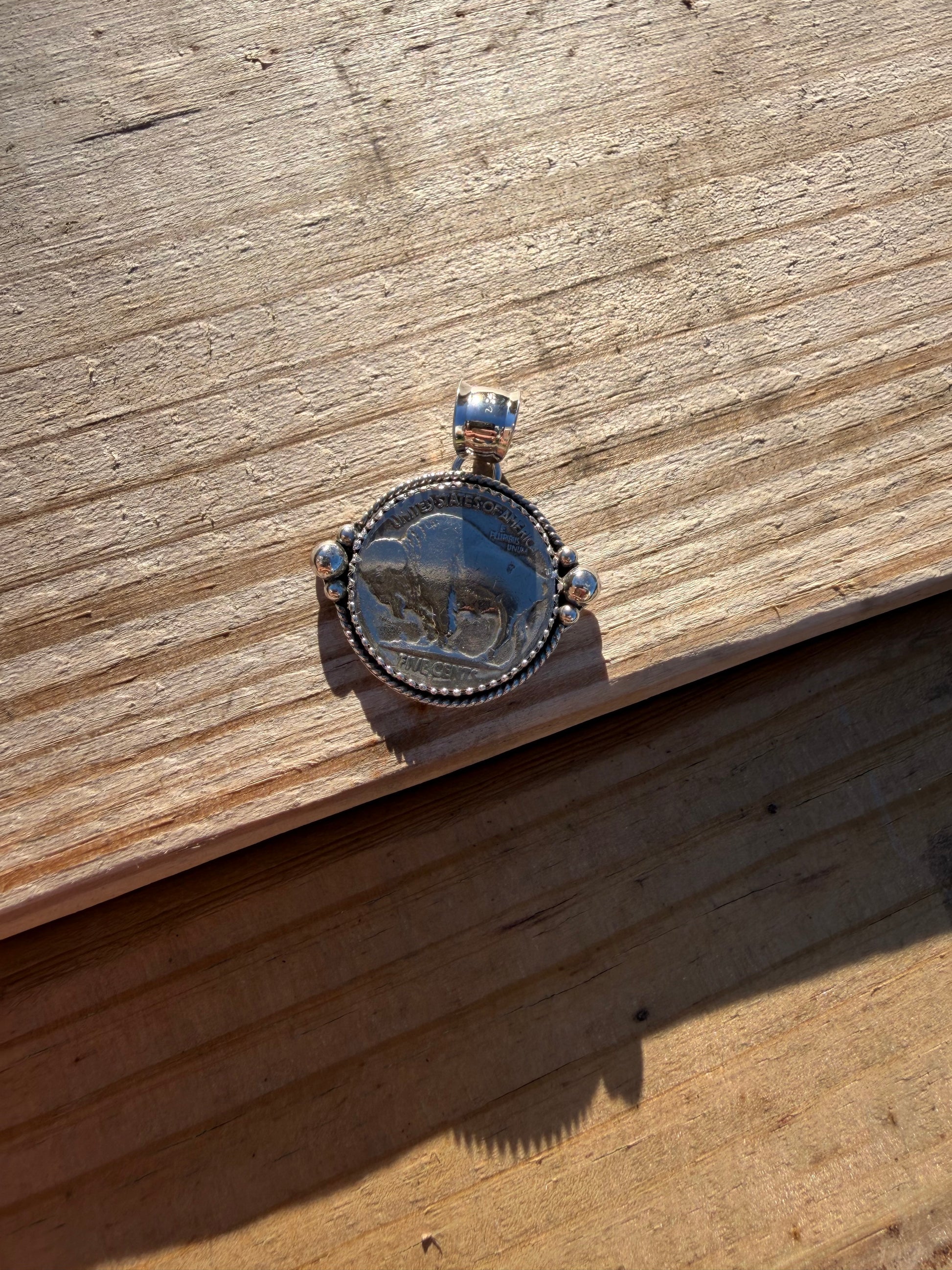 Buffalo Nickel, set in Sterling Silver and Fine Silver. Fits up to 4mm pearls.