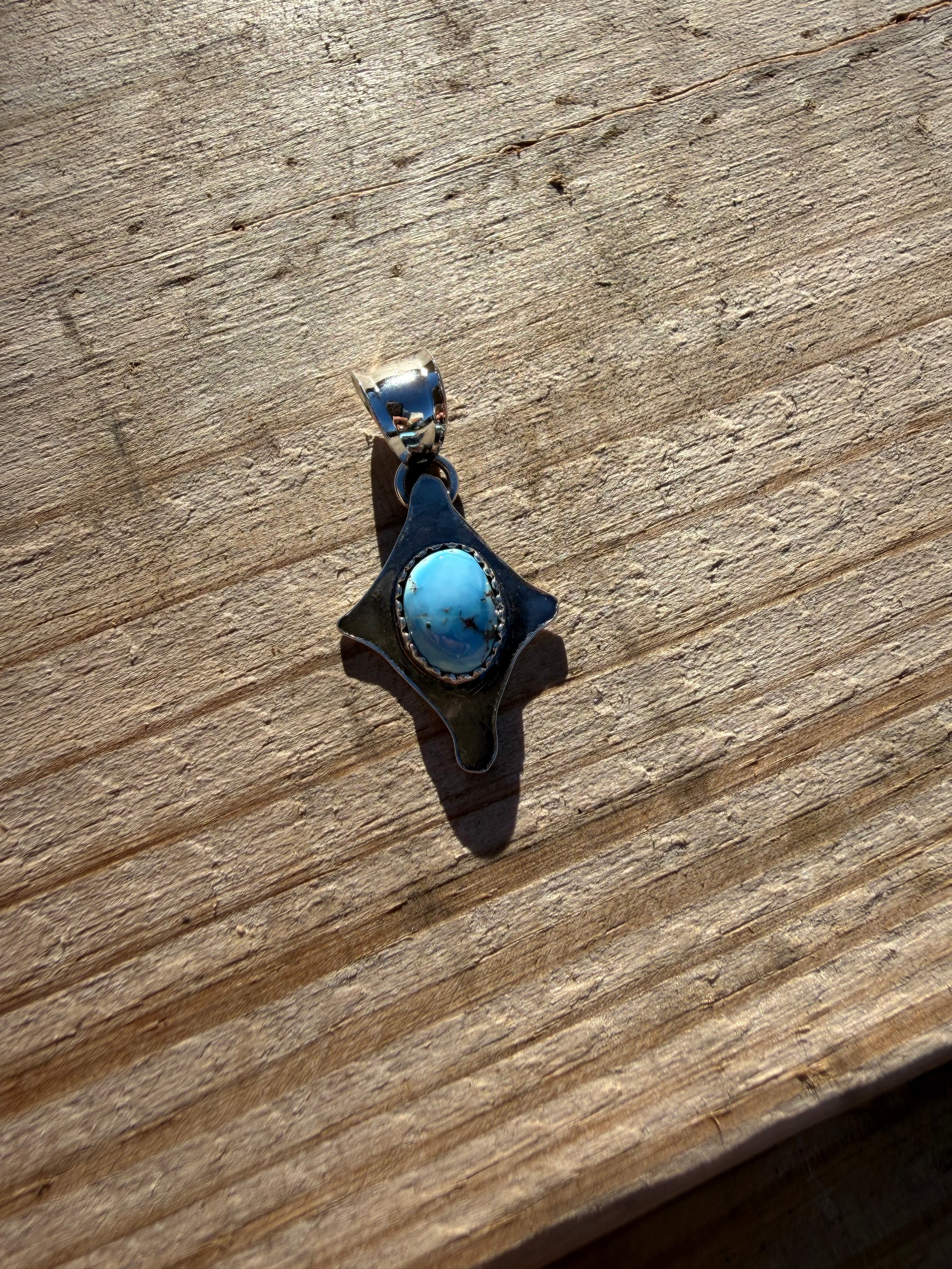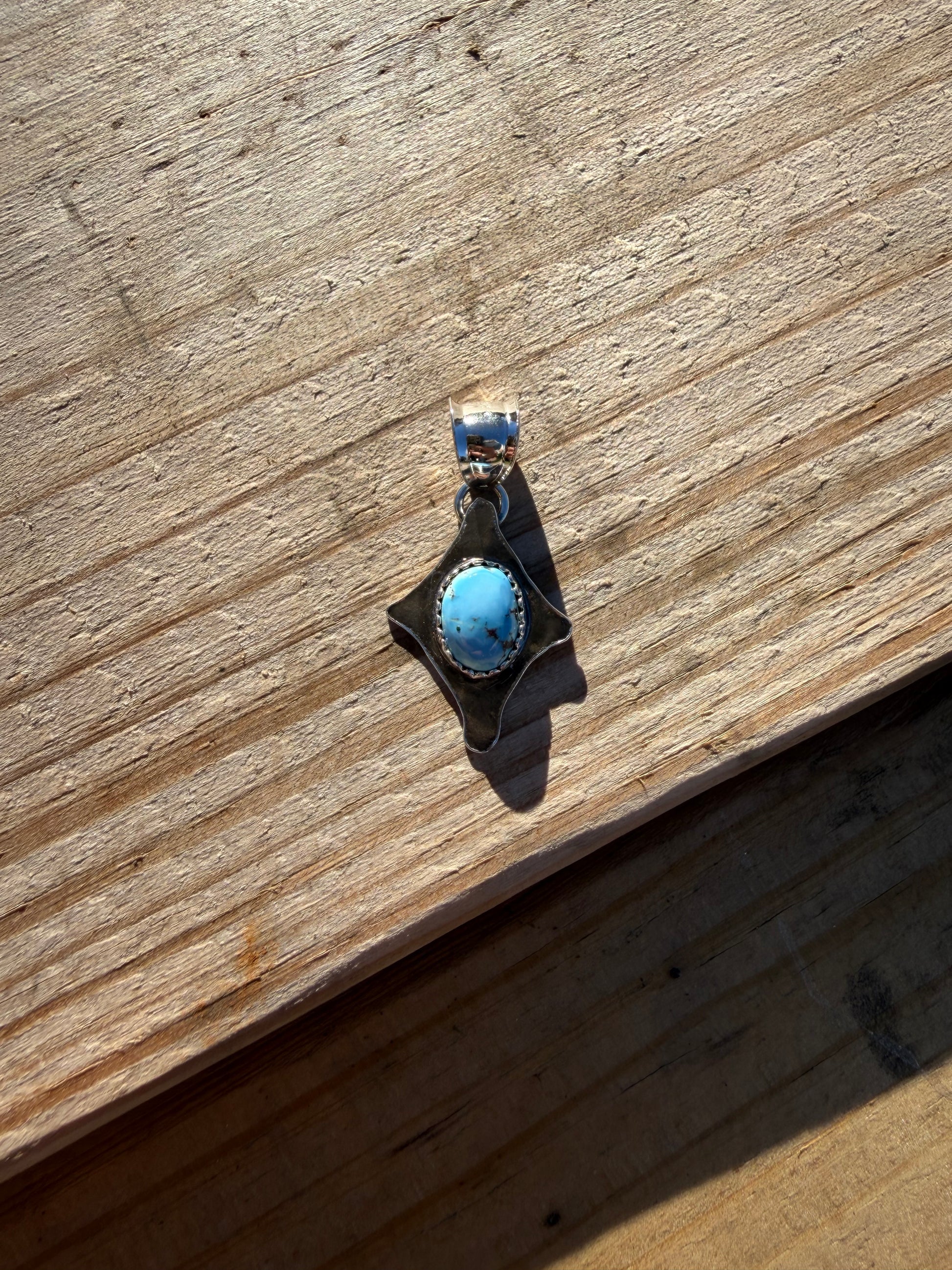 Genuine Golden Hills Turquoise, set in Sterling Silver and Fine Silver. Fits up to 4mm pearls.